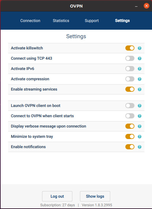 The client currently only supports OpenVPN as protocol. OVPN offers WireGuard, but you have to configure it manually. This is not a problem, as the provider provides good and understandable instructions.
